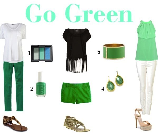 First Outfit: white tee (T by Alexander Wang), green jeans (Old Navy) sold out, leopard sandals (Steve Madden) 1) eyeshadow trio (Nars) 2) blue/green nail polish (Essie) Second Outfit: black fringe top (Allsaints.com), green shorts (J. CREW), gold sandals (Dolce Vita) 3) green cuff (Vince Camuto) 4) green earrings … Read The Post